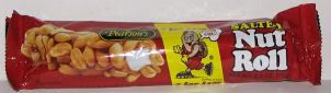 Pearson's Nut Roll: "Pearson’s Nut Roll is kinda like a Payday bar. It’s a soft nougat center, then a small layer of sticky caramel and a generous coating of salted peanuts (Virginia peanuts according to their website)."